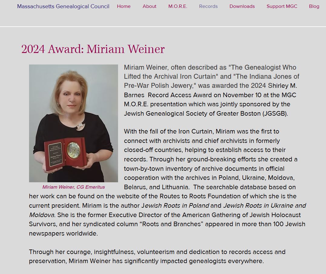 Federation of Genealogical Societies, 2020 Rabbi Malcom H. Stern Humanitarian Award